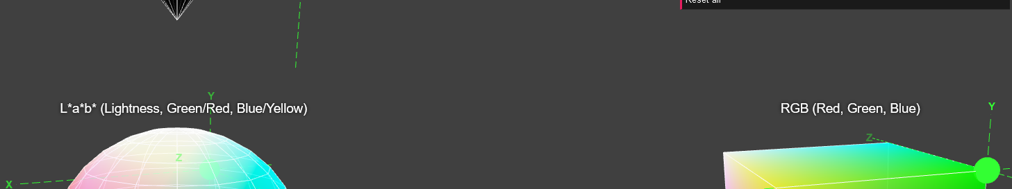 https://www2.in.tu-clausthal.de/~cgstore/colorvis/model-view.html visualized the HSV, Lab and RGB color space simultaneously.